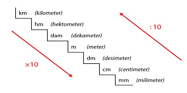 Misalnya, jika anda memiliki sebuah tali dengan panjang 5 meter, mengacu pada tangga konversi satuan panjang di atas, anda dapat dengan mudah mengubahnya menjadi sentimeter dengan mengalikannya dengan 100.