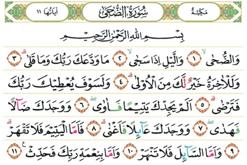 Sebelum kita membahas lebih jauh mengenai keutamaan dari surat ad dhuha ini, alangkah baiknya kita mengaetahui tentang bacaan surat dhuha bukan? Berikut bacaan surat dhuha arab dan latin: